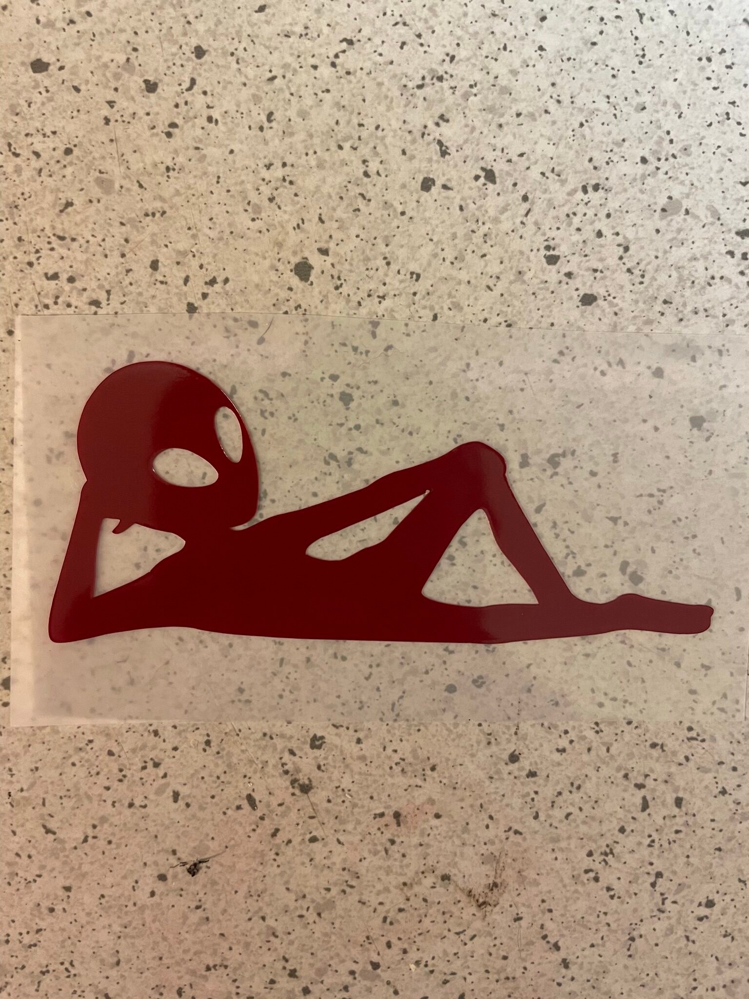 Kick back with this laid-back alien silhouette sticker. Featuring a chill extraterrestrial striking a casual pose, it’s the perfect blend of sci-fi and humor for fans of UFO lore and retro space vibes.